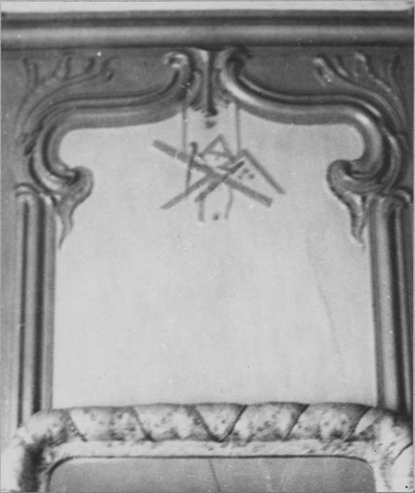 Les lambris sont sculptés de panneaux moulurés de diverses courbes dans leur partie supérieure. Le panneau surmontant la porte à l'ouest présente une petite corbeille de fleurs. L'alcôve est surmontée d'un arc en accolade. La partie supérieure de certains panneaux est agrafée de feuilles d'acanthe. Les motifs sont plus nombreux sur le mur sud où ils sont organisés en chute : brasero enflammé à gauche, compas et équerre en sautoir au centre, et enfin gerbe de feuilles et de fleurs à droite.