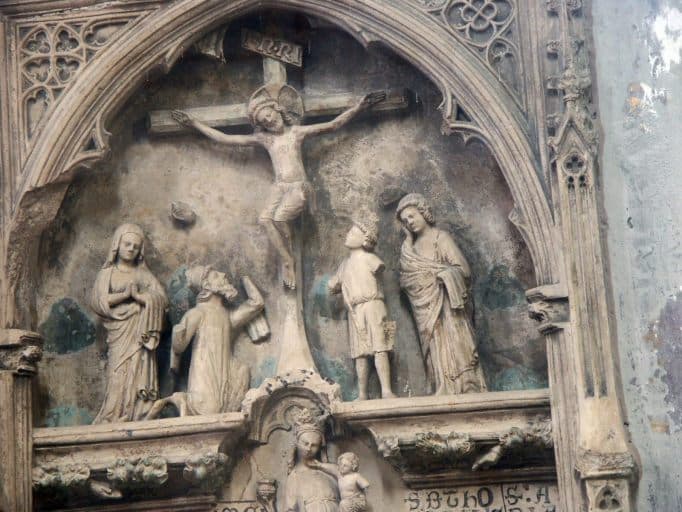 mur sud de la nef, 3e travée (scellée dans le mur, pose d'une vitre de sécurité en 2002)