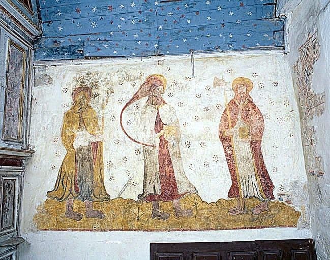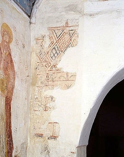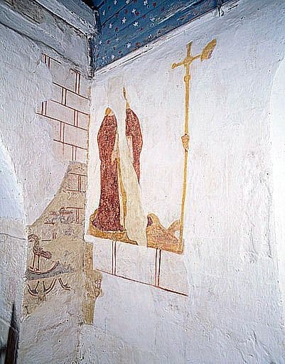 murs nord, sud et ouest de la travée droite de la chapelle ; murs nord et sud de l'abside (actuelle sacristie)