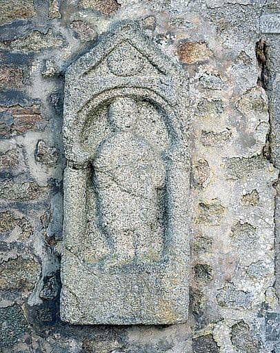scellé dans le mur ouest de l'église à gauche de l'entrée, au niveau de l'ancienne nef ruinée