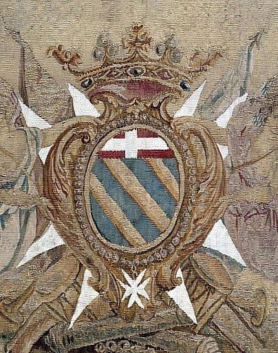 antependium aux armes du chevalier de Gain de Linard entre saint Jean-Baptiste et saint Pierre