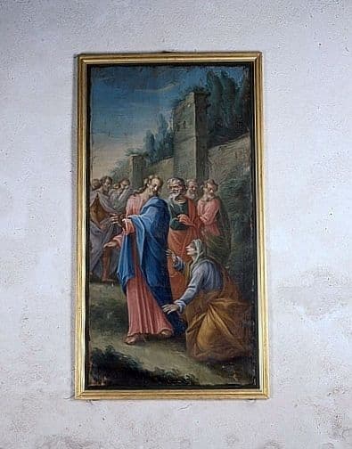 tableau : la Guérison d'une hémorroïsse (ensemble du décor intérieur)