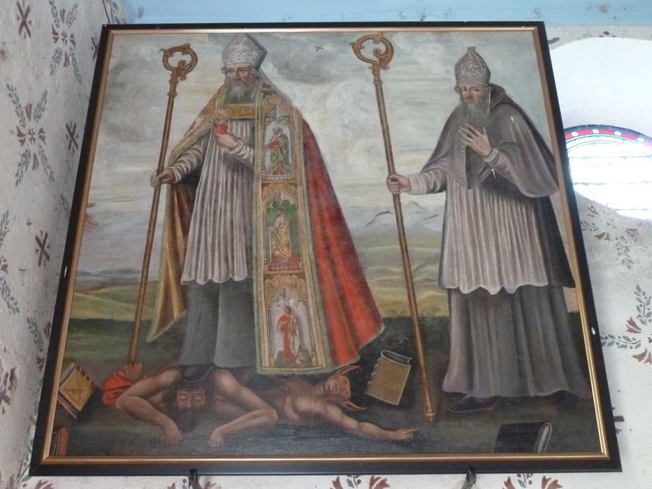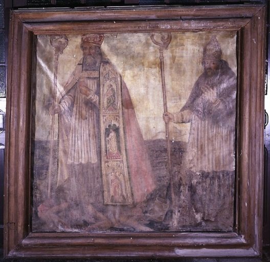Ce tableau de la 2e moitié du 17e siècle, recoupé, représentait peut-être à l'origine les quatre docteurs de l'Eglise latine : saint Jérôme, saint Grégoire le Grand, saint Augustin d'Hippone et saint Ambroise de Milan, ces deux derniers seuls conservés.