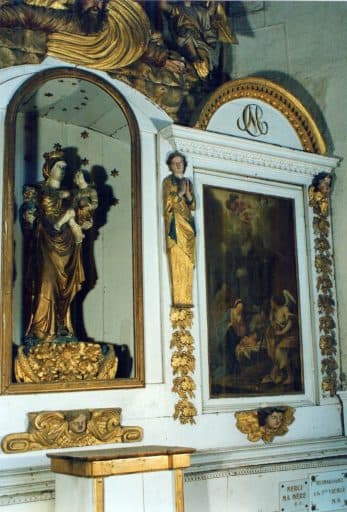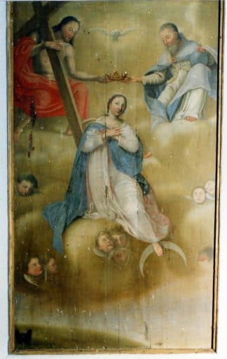 POP | Plateforme ouverte du patrimoineretable, 2 tableaux : la Nativité, le Couronnement de la Vierge, statue : Vierge à l'Enfant, haut-relief : Dieu le Père