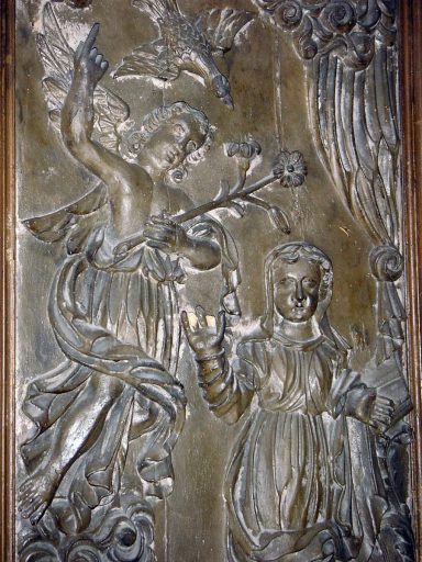 POP | Plateforme ouverte du patrimoine2 demi-reliefs (éléments de retable) : l'Annonciation et la Nativité