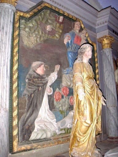 POP | Plateforme ouverte du patrimoineautel, retable architecturé, tableau d'autel : la Remise du rosaire à saint Dominique, groupe sculpté : saint Roch et l'ange, statue : saint Sébastien (autel privilégié de la chapelle sud)