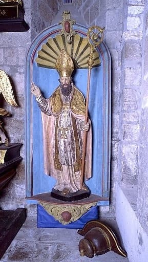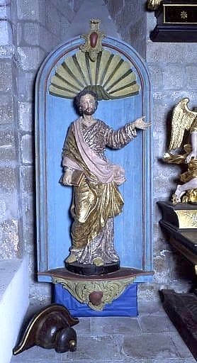 2 statues (éléments du retable du maître-autel) : évangéliste dit saint Matthieu, évêque dit saint Blaise