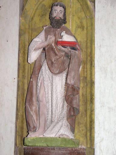 Statue de saint Jean-Baptiste, en pierre, du 16e ou 17e siècle. Elle fait pendant à la statue de saint Antoine abbé (cf. notice PM23000800).