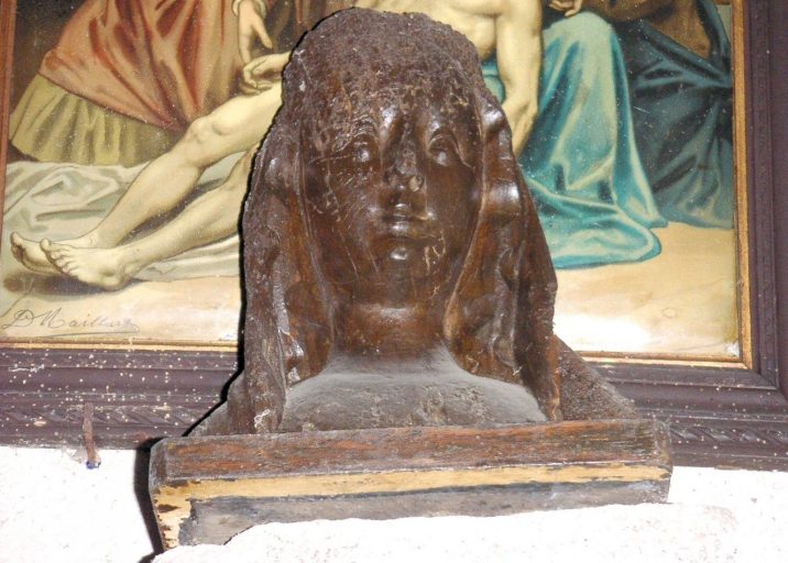 Arrêté : une tête de Vierge, fragment d'une statue, bois, 16e siècle.