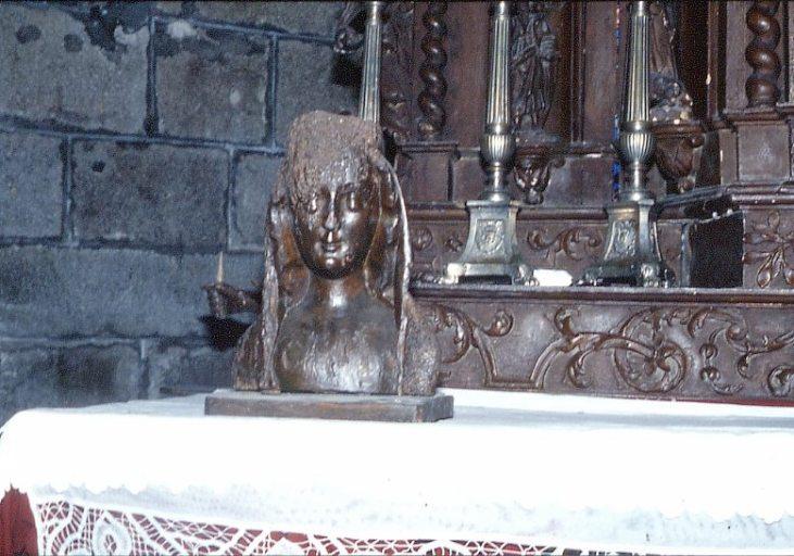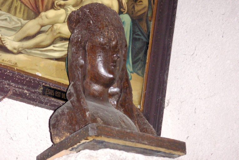 posée sur un corbeau en pierre, au-dessus d'une porte, à droite de l'autel latéral