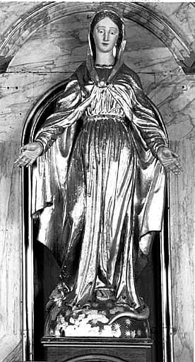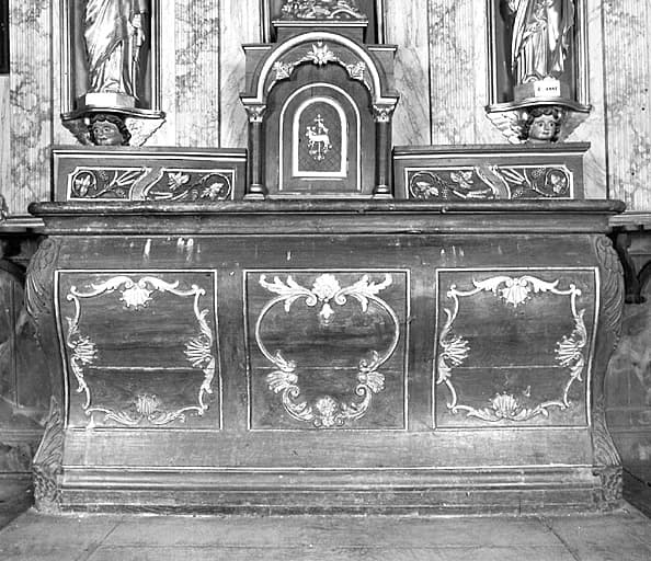 POP | Plateforme ouverte du patrimoinedegré d'autel, autel tombeau, gradin d'autel, tabernacle, retable architecturé et ses 3 statues : Immaculée Conception, saint Joseph et sainte Anne (autel de la chapelle sud)