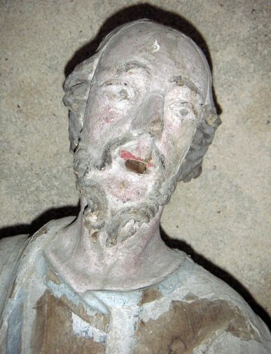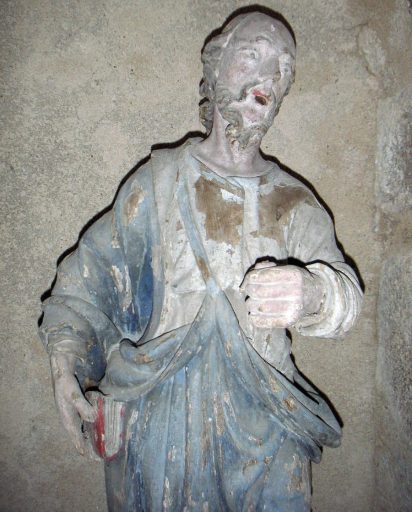 Répertoire des objets protégés de la Creuse (2005) : Statue, présumée de saint Jean l'Evangéliste, tient un livre de la main droite.