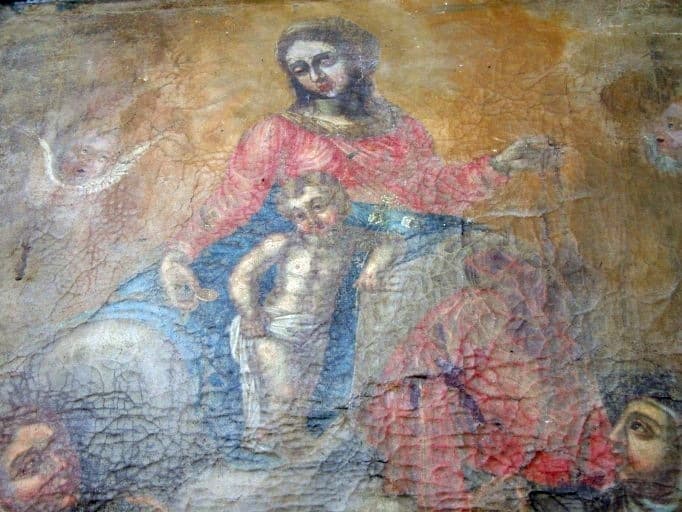 élément de retable et son tableau d'autel : la Remise du rosaire à saint Dominique de Guzman et sainte Catherine de Sienne