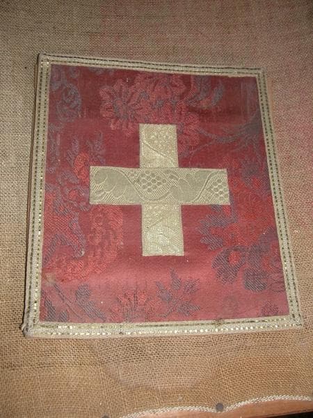 ornement rouge : chasuble, étole, manipule, bourse de corporal