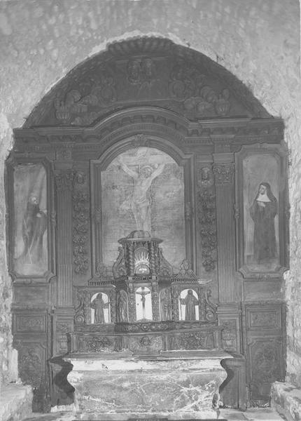 Arrêté de 1980 : maître-autel, gradin, tabernacle, exposition, contretable, retable, 3 tableaux.