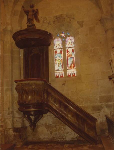 Chaire à prêcher datant du 18e siècle ; la statue de saint Michel de l'abat-voix, de facture plus grossière, est peut-être un remploi