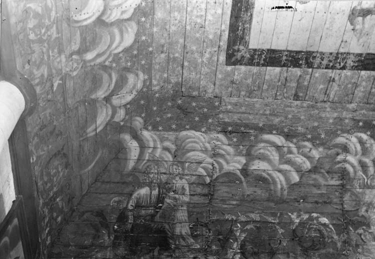 Plafond peint entre 1682 et 1689 par le peintre Arnaud Paradol (non documenté). Le commanditaire était probablement le curé Petit.