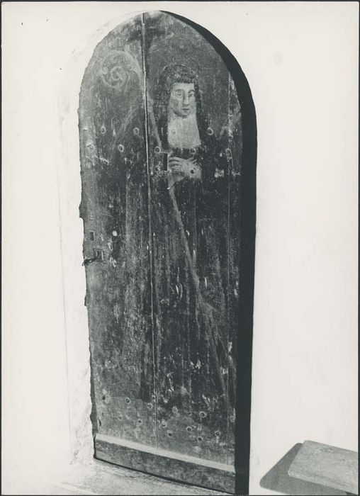 Porte entre la sacristie et le choeur figurant sainte Radegonde.