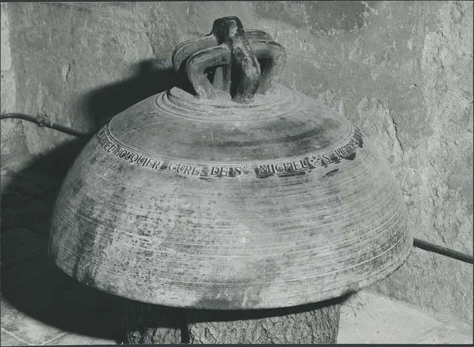 Timbre hémisphérique porté par six oreilles. Décor de filets.