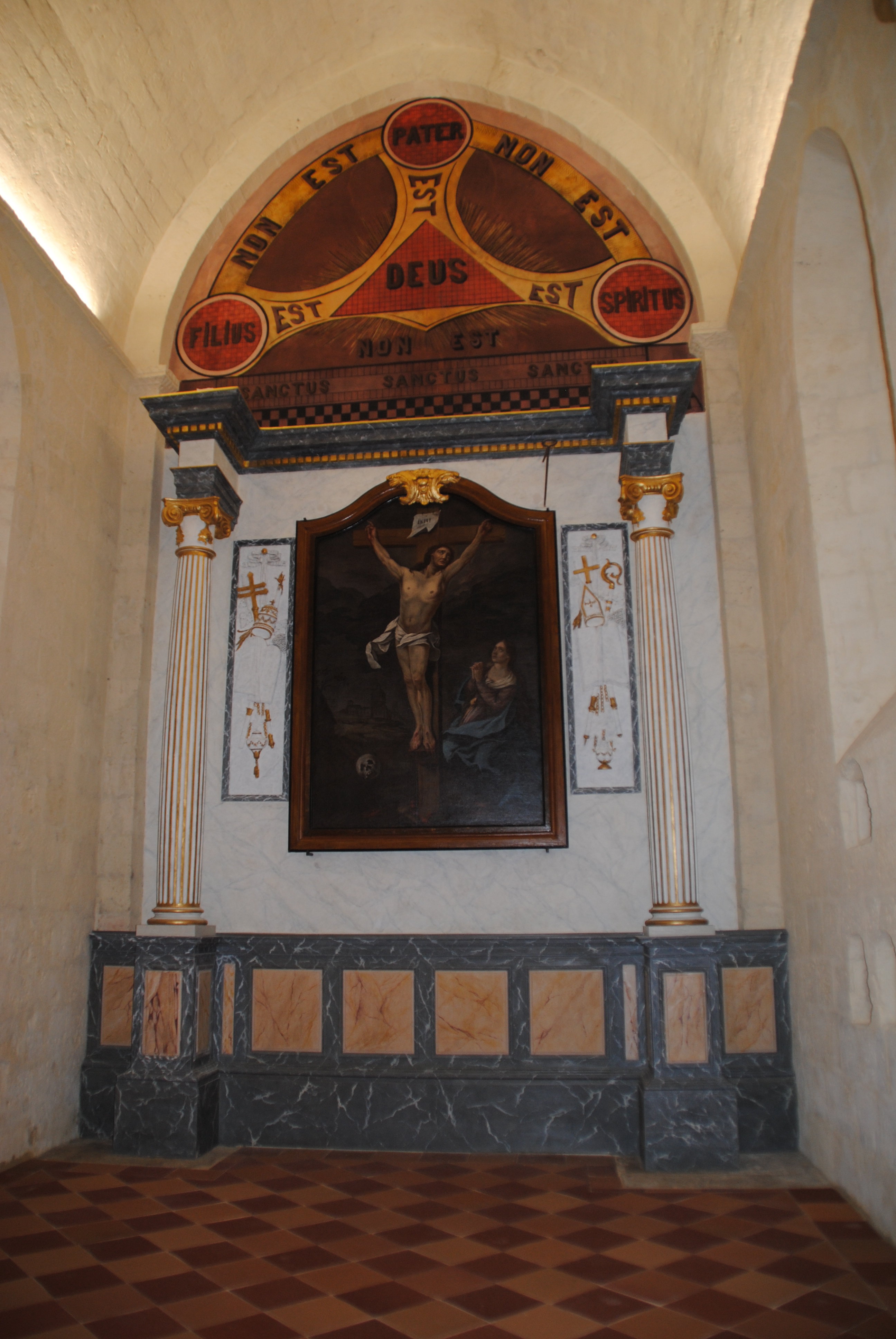 Restauration en 2013 : huile sur toile, peinture murale, stucs peints, bois sculptés polychromes et dorés ont été restaurés. A aussi été traité en même temps l’environnement maçonné et carrelé (sol) du retable. Un autel du 19e siècle placé en avancée a été déplacé dans la nef de l’église, pour laisser disponible l’espace devant l’œuvre dans la chapelle (qui est en fait un chœur), un espace liturgique contemporain plus « léger » ayant remplacé cet autel pour les célébrations.