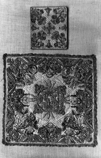 Numéro d'inventaire de la thèse : bourse : F 1 45 ; chasuble : A 1. 59 ; voile : J 1.35.