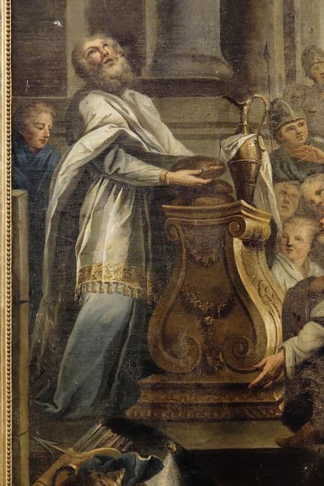 tableau : Le Sacrifice de Melchisédech (face), Saint Evêque (revers), et cadre