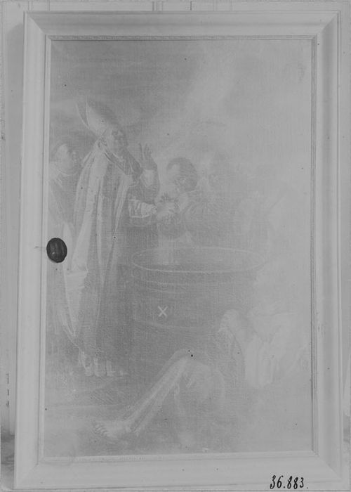 Oeuvre provenant de l'archevêché, attribuée à Adrien Van der Venne. Cadre récent (19e siècle). Le tableau a une copie (ou est la copie de) dans l’église de Villersexel https://www.pop.culture.gouv.fr/notice/palissy/PM70001656 (Fantoni, 2022)