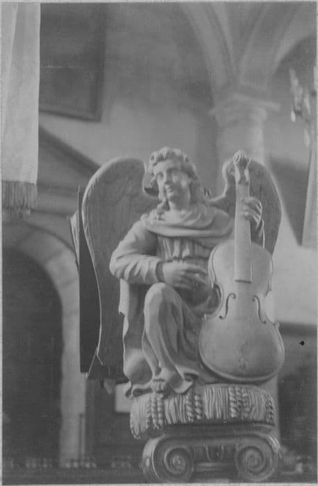 Les pupitres sont constitués par deux anges, dont l'un joue de la lyre et l'autre du violoncelle ou viole de gambe. Ils sont supportés par deux colonnes basses, à chapiteaux.