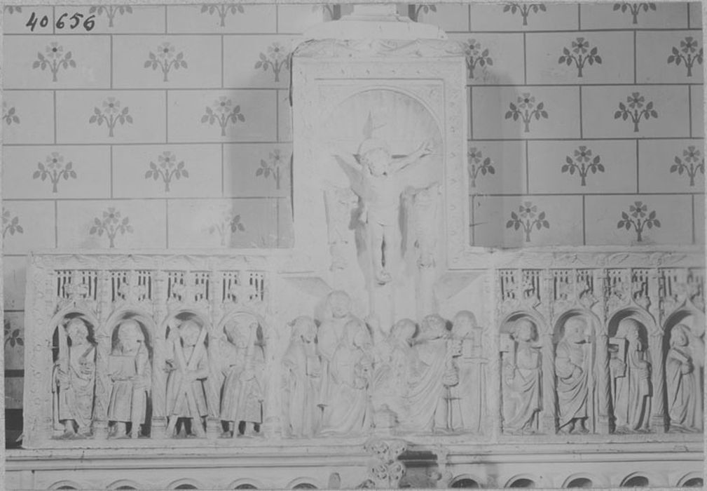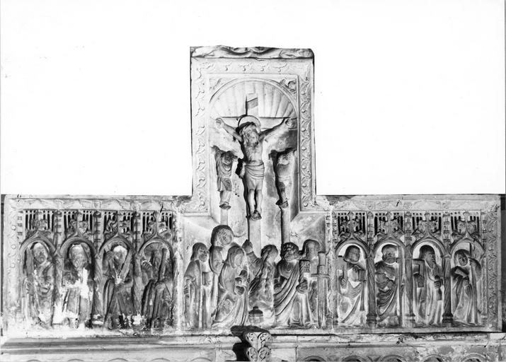 Au milieu est représentée la scène de la Crucifixion.