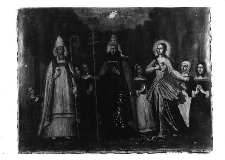tableau : Saint Blaise, saint Grégoire, sainte Agathe, donateurs et donatrices