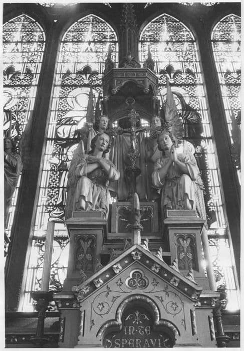 autel ; tabernacle ; exposition ; statue (12) ; croix d'autel ; chandelier d'autel ; niche (2) ; verrière