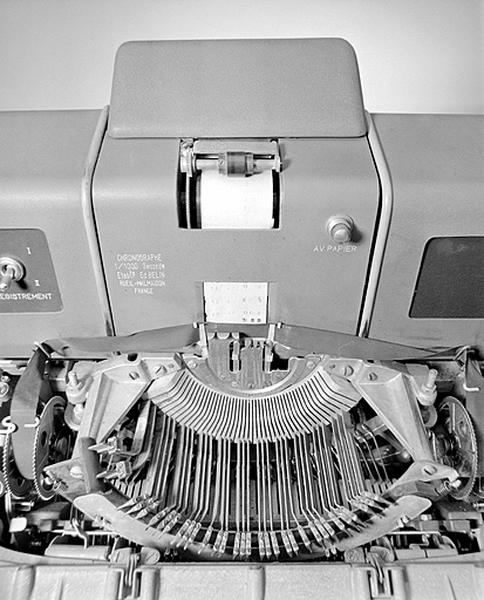 L'appareil comprend essentiellement un ensemble d'inscription (du type machine à écrire à frappe électromagnétique), un mécanisme synchrone et une mémoire électronique avec son dispositif de commande et d'effacement pour la remise à l'heure. L'ensemble des organes électriques et électroniques était réuni dans une armoire (rack), aujourd'hui manquante, sur laquelle pouvait être placée la partie machine à écrire, seule conservée (il était aussi possible de se positionner cette dernière à distance de l'armoire).
