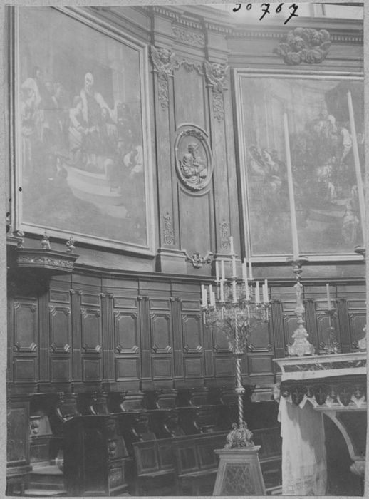 lambris de revêtement, 5 tableaux : Le Mariage de la Vierge, La Présentation de la Vierge au Temple, L'Assomption, L'Annonciation, Sainte Anne et la Vierge