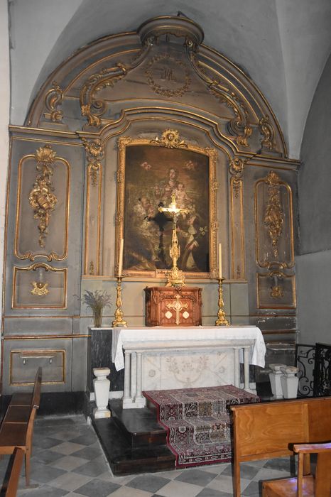 h = 700 ; la = 490 ; Dimensions du retable ; tableau : la = 165, h = 240