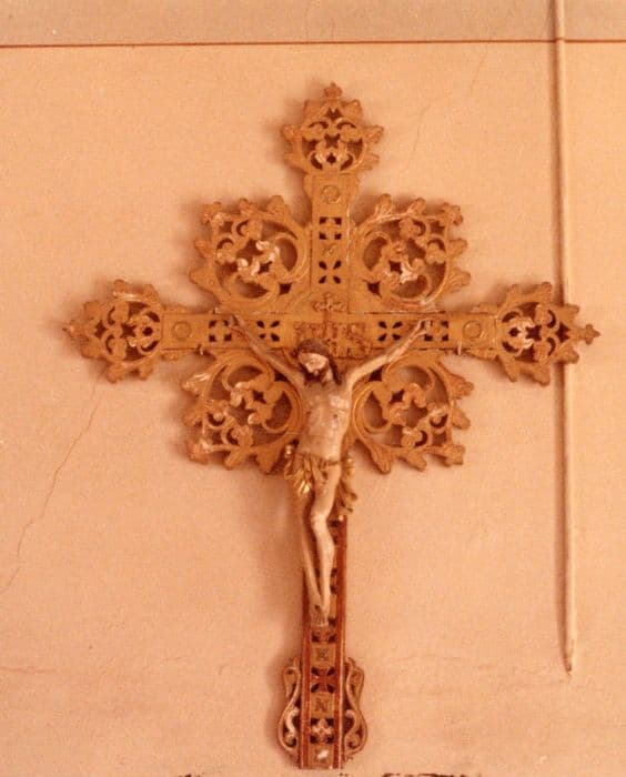 Croix à motifs ajourés. La croisée des branches présente un décor de fleurons en feuillages ajourés. Fleurons aux extrémités des branches.