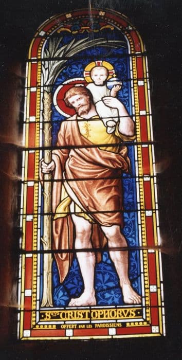 saint Michel terrassant le démon ; saint Christophe passant le gué avec l'Enfant Jésus ; sainte Jeanne d'Arc