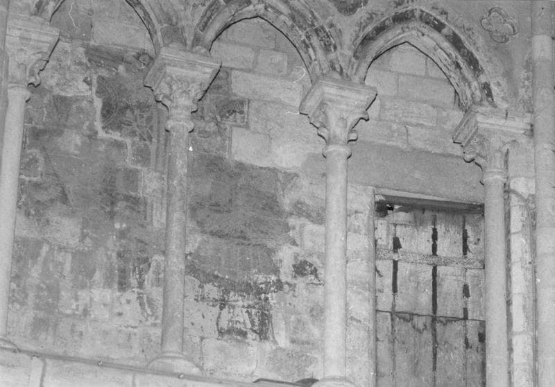 Ces peintures représentent des saints divers : saint Laurent et sainte Clotilde, un saint vêtu en diacre (saint Mathurin), saint Jean-Baptiste, le Christ en croix entre la Vierge et saint Jean, saint Jacques le Majeur et saint Christophe, une sainte sous attribut et un second personnage disparu, un évêque et un chevalier (saint Adrien ?), une sainte tenant la palme du martyre, etc.