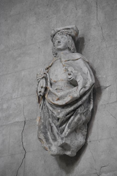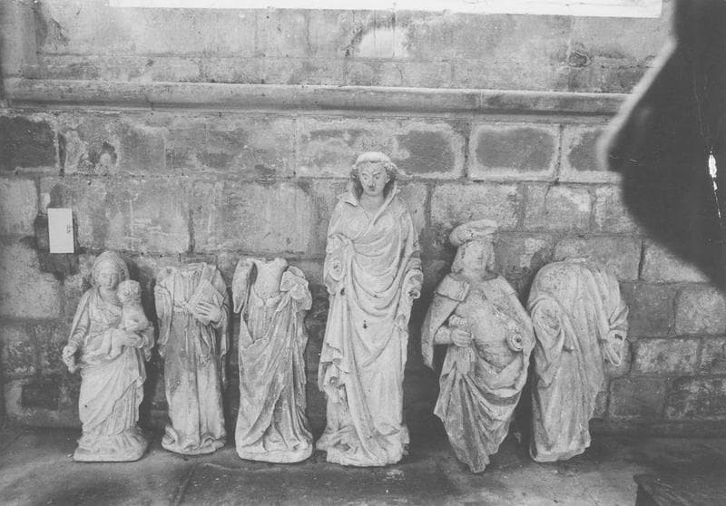 L'ensemble est constitué d'une Vierge à l'Enfant du 16e siècle, d'un saint décapité (peut-être saint Paul) du 16e siècle, d'une sainte amputée de la partie supérieure du tronc, du 15e siècle, les trois autres statues paraissant être les vestiges d'une Mise au Tombeau du 16e siècle : saint Jean, amputé des mains, Joseph d'Arimathie, amputé des pieds et de la main gauche, et Nicodème, amputé de la tête, des mains et des jambes.
