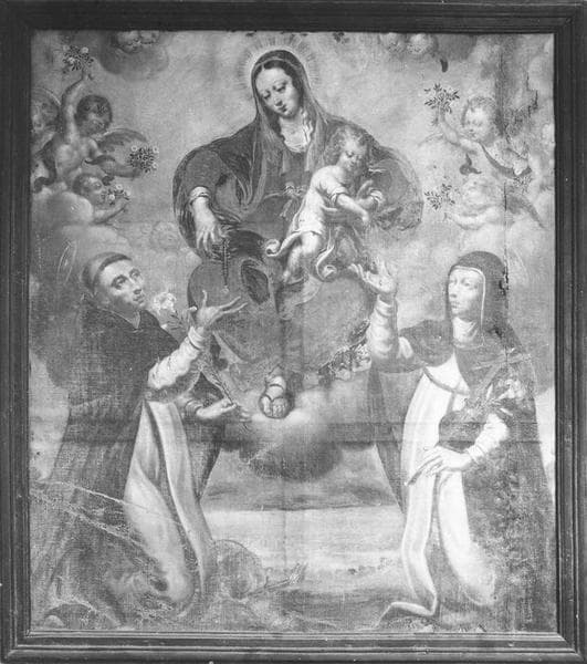 tableau : la Donation du Rosaire à saint Dominique et sainte Catherine