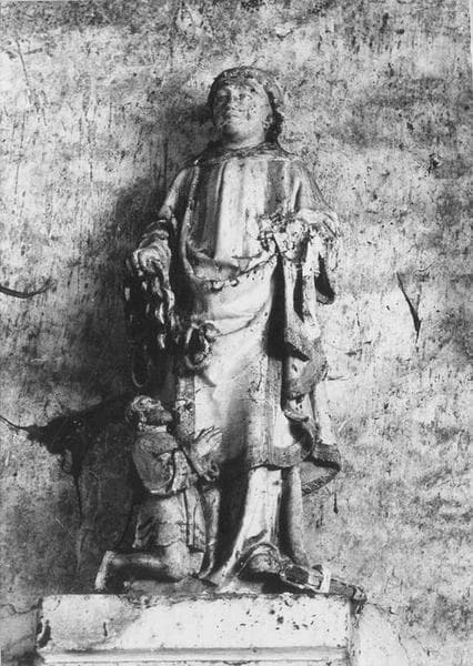 groupe sculpté : Saint Léonard et un donateur