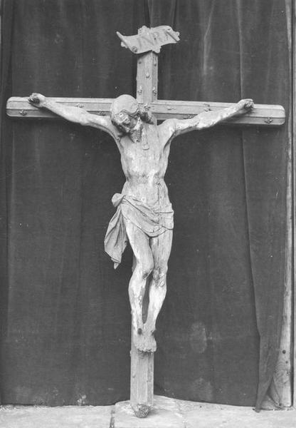 Cette statue se trouvait avant 1939 sur la poutre de gloire. La croix a été refaite au 19e siècle.