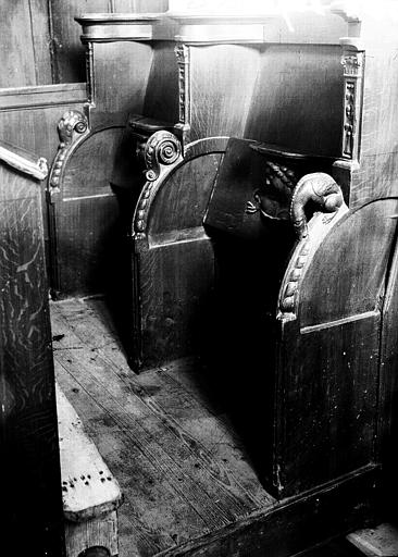 Ces stalles proviennent probablement d'un autre édifice (abbaye de la Noë ou prieuré du Parc d'Harcourt).