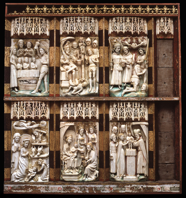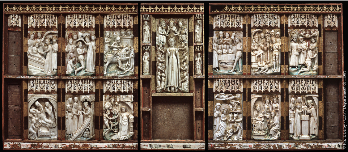 albâtre : taillé, peint, doré ; bois : taillé, peint, doré