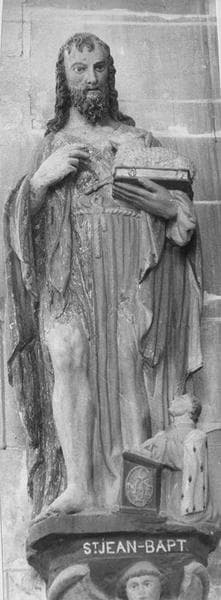 groupe sculpté et son socle : Saint Jean-Baptiste et donateur