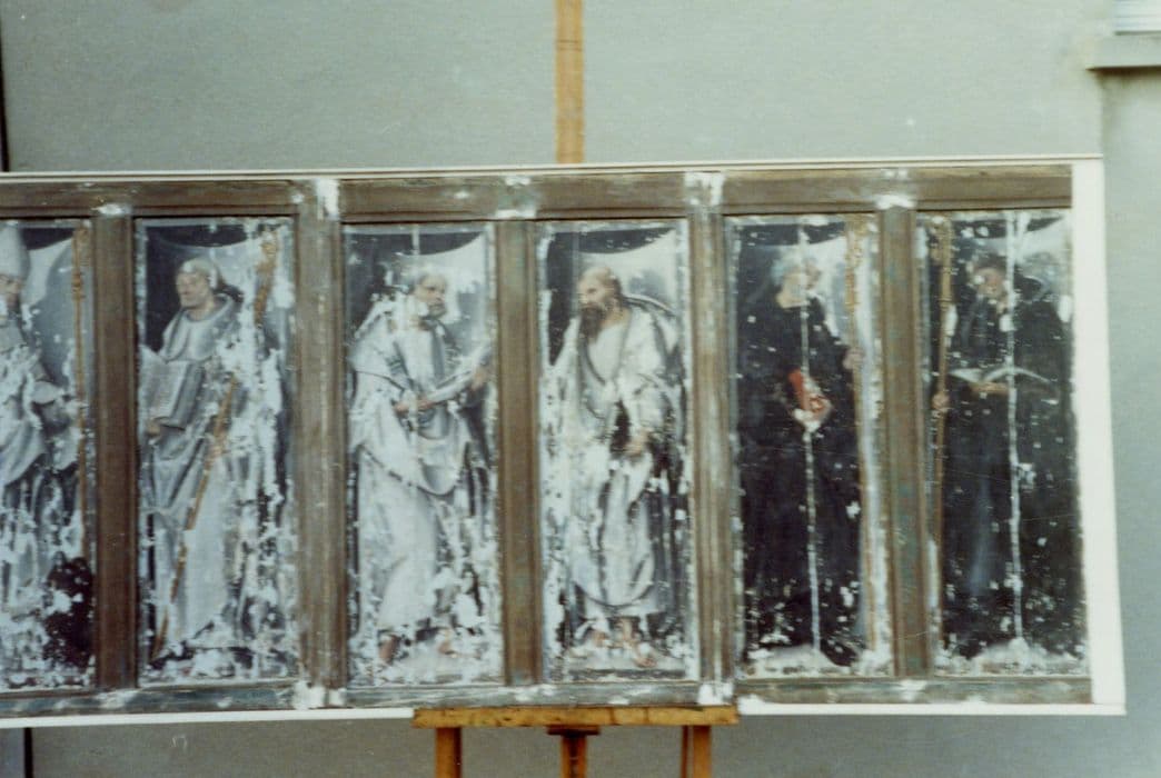 POP | Plateforme ouverte du patrimoinedevant de l'autel secondaire sud (panneau peint) : Saint Blaise (?), Saint abbé, Saint Pierre, Saint Paul, Deux abbés vêtus de noir