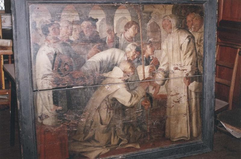 tableau et son cadre : Saint Bruno refusant la mitre et la crosse