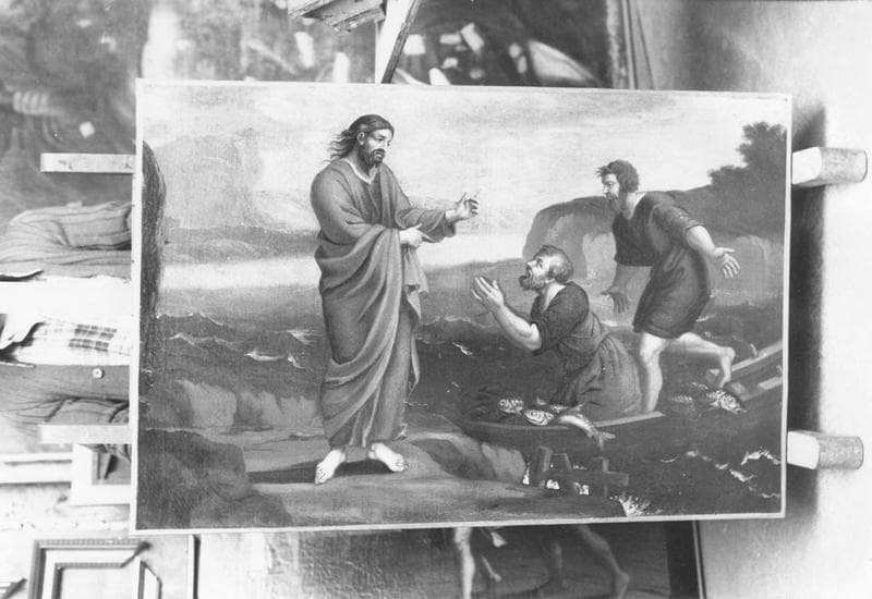 tableau et son cadre : Saint André témoin de la marche sur les eaux