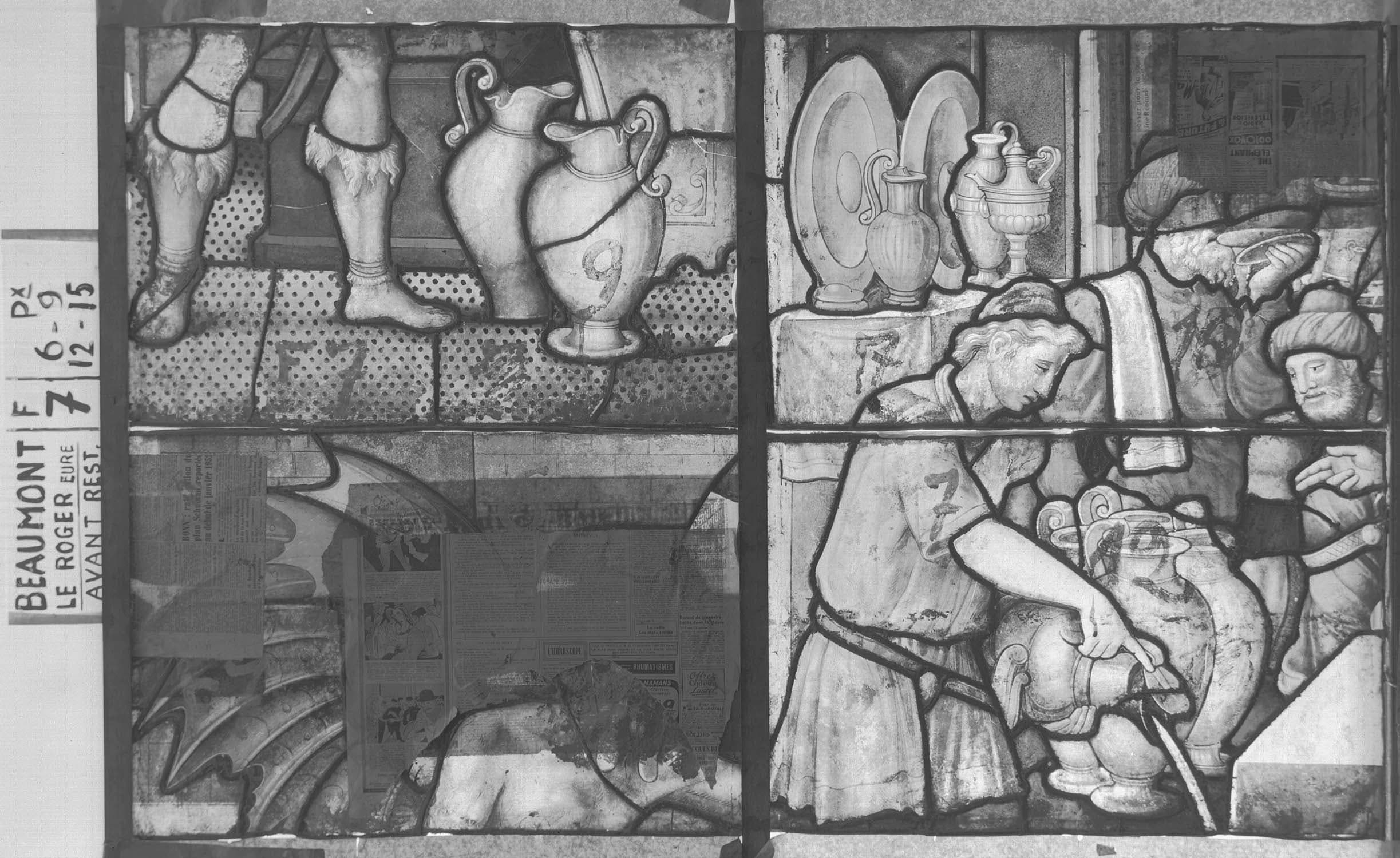 verrière (vitrail tableau) : Noces de Cana, Miracle de Théophile (baie 7)