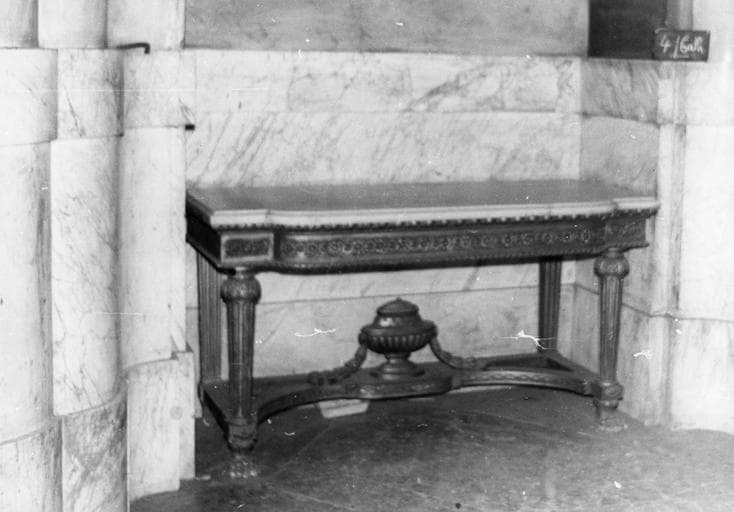 bois : tourné, décor en relief, doré ; marbre : taillé