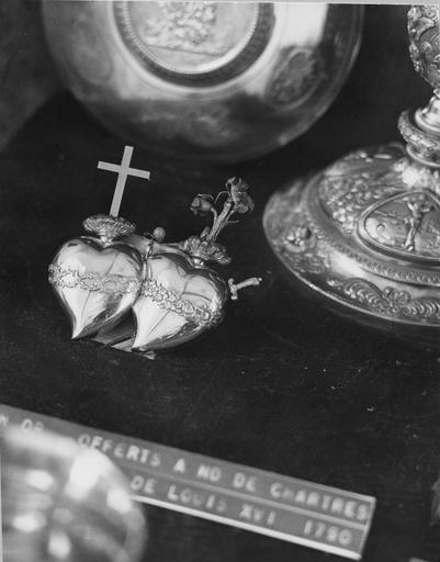 Coeurs votifs offerts par Madame Elisabeth ; sauvés à la Révolution, ils furent redonnés à la cathédrale en 1820.